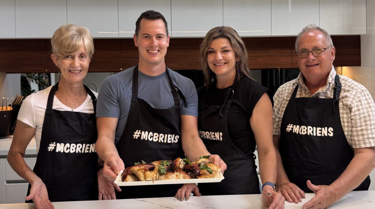 - Place lemon and onion pieces into the chicken cavity. Use kitchen twine to tie legs together. Place chicken on a roasting rack, sitting in roasting tray lined with foil, this will stop marinade burning on base of tray. Roast for 25 minutes.